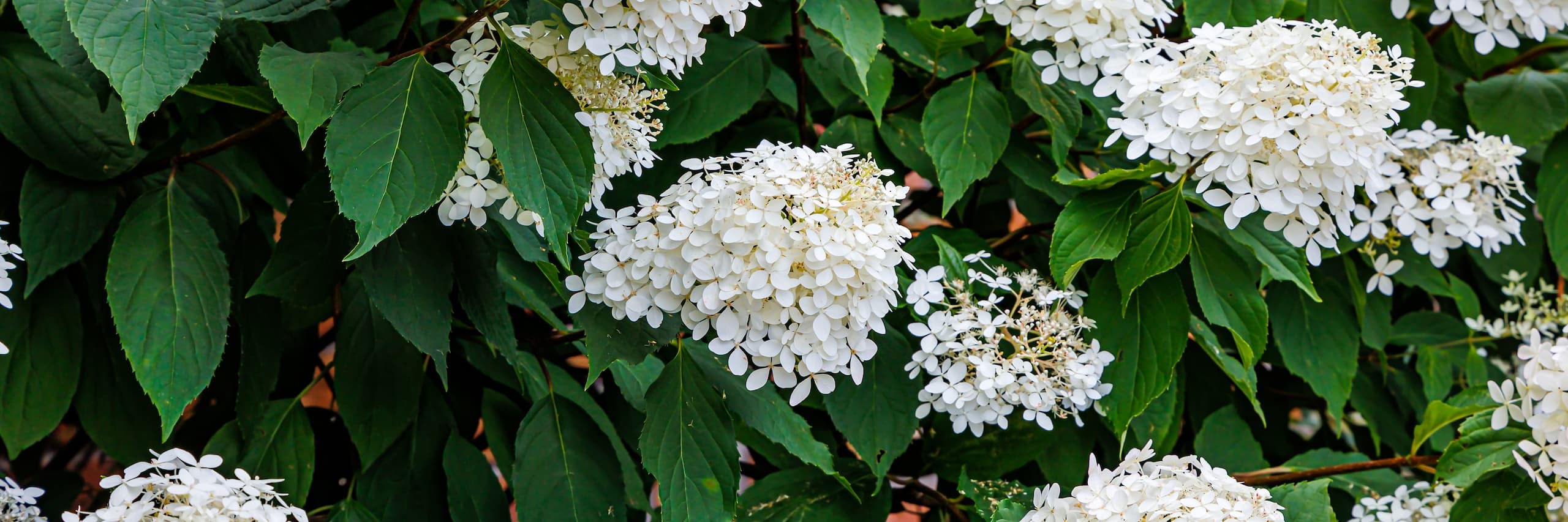 Hydrangea paniculata is the most cold hardy member of the hydrangea genus. It can be reliably grown in zones 4 to 7. It is native to Asia. It can grow 10 to 15 feet tall. It has large, creamy-white flowers, which are borne in 6- to 18-inch long panicles, and are produced in mid-summer. As flowers mature, they may turn pink. Plants, particularly those of the cultivar H. ‘Pee Gee’, are sometimes pruned into a tree form. Hydrangea paniculata is also suitable for use in a mixed border or as a deciduous hedge.